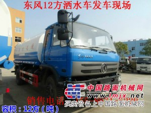 12方洒水车上装配置:前冲后洒,后工作平台带高炮,右位花洒,侧喷。